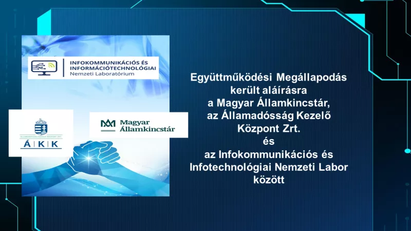 Együttműködési keretmegállapodást kötött az Infokommunikációs és Információtechnológiai Nemzeti Laboratórium az Államadósságkezelő Központtal és a Magyar Államkincstárral. A három szervezet együttműködése fókuszában a hazai és nemzetközi kutatás erősítése, a tudományos együttműködés fokozása áll.